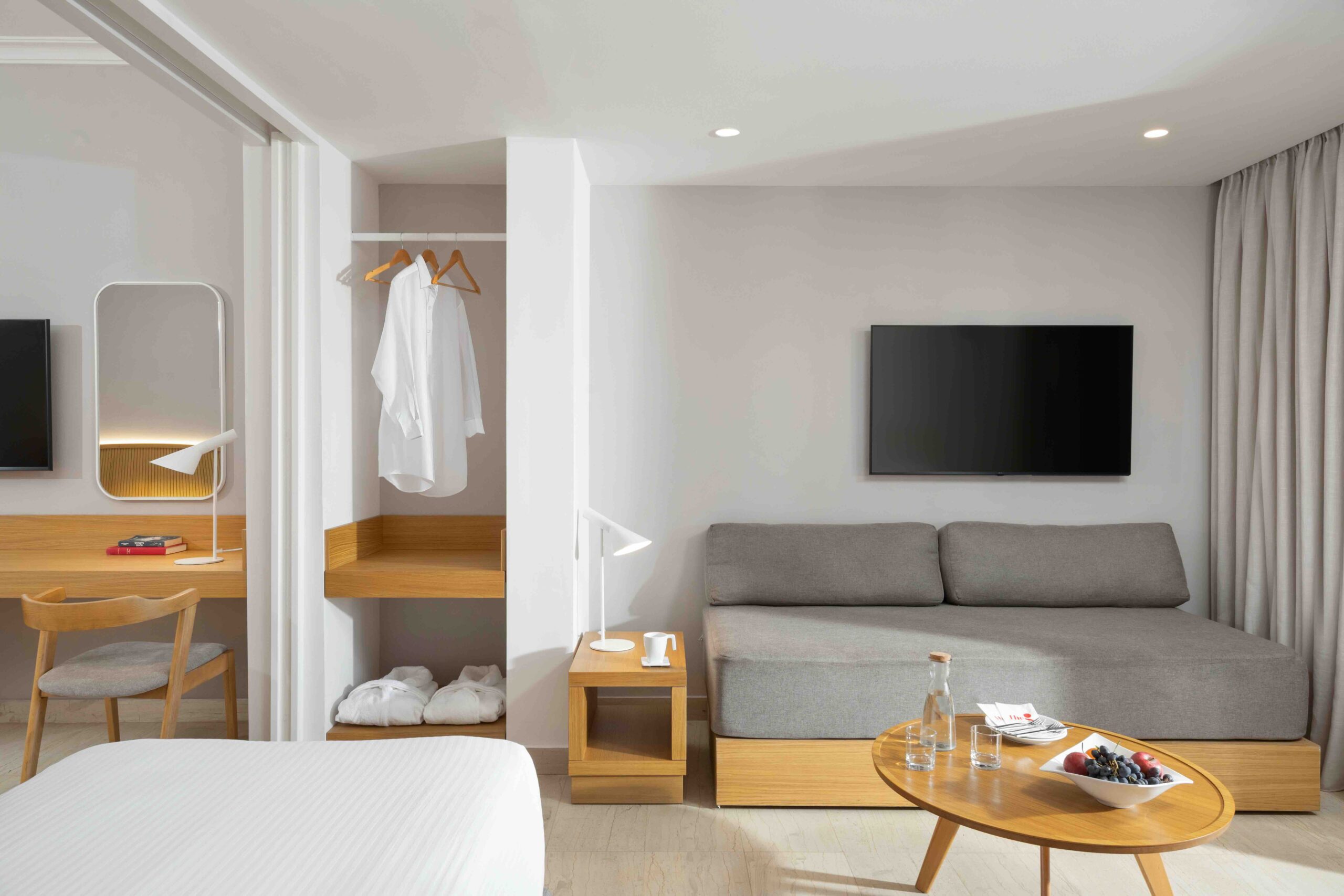 Unsere großzügigen Familienzimmer mit Garten- oder Meerblick vereinen modernes Design, eine helle Atmosphäre und ein durchdachtes Raumkonzept für unbeschwerte Urlaubstage mit der ganzen Familie. Wer direkt in der Nähe eines Pools untergebracht sein möchte, kann ein Familienzimmer mit direktem Zugang von der Terrasse zu einem Gemeinschafts- oder einem privaten Pool wählen.